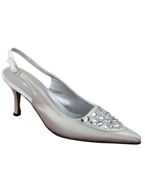 Ivory sling back shoes,satin,rhinestone,pointed toe,adjustable straps.Heel height is 3 inches. Category: / Wedding / Wedding Shoes / Bridal Shoes